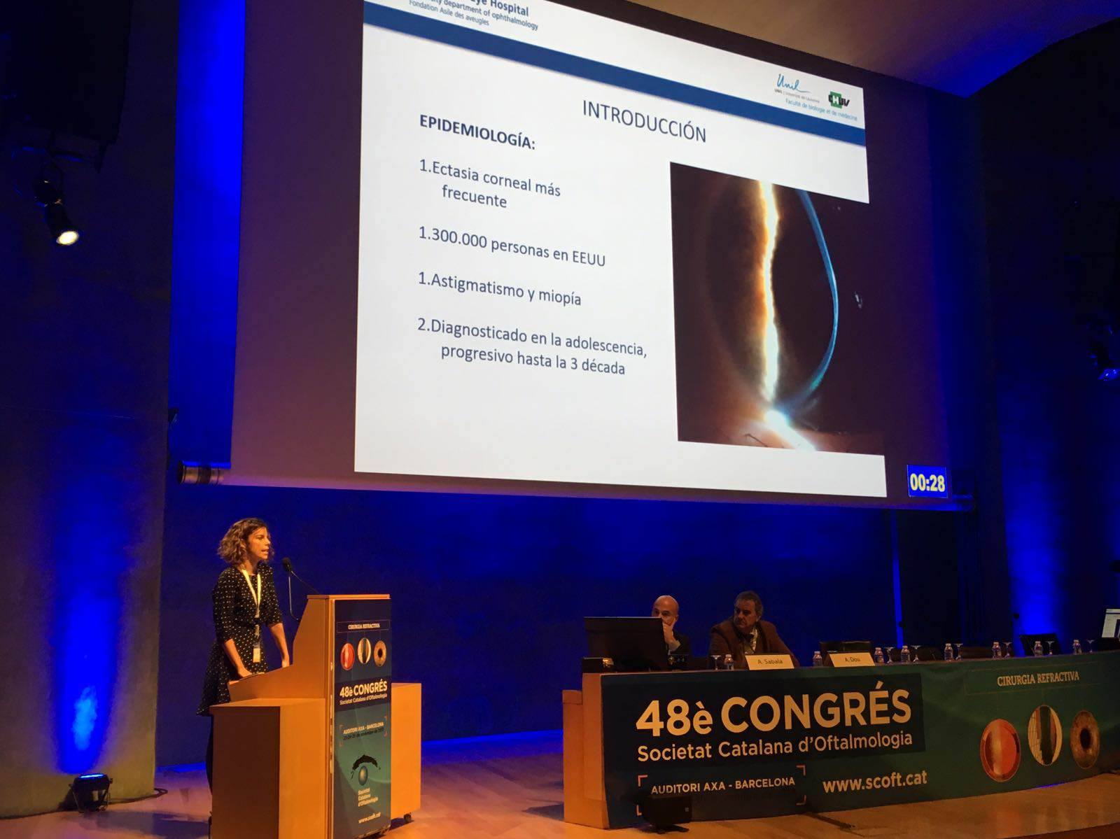 Pel que fa a la presentació de vídeos al congrés de la SCOFT, la Dra. Eileen Guerrero hi va dur el vídeo titulat “Implant de lent fàquica en un caso complex assistit per OCT intraoperatòria”, que té com a autors la mateixa Dra. Guerrero, i els doctors Rosa Gutiérrez, Mercè Martí, Javier Reyes i Francesc Duch.