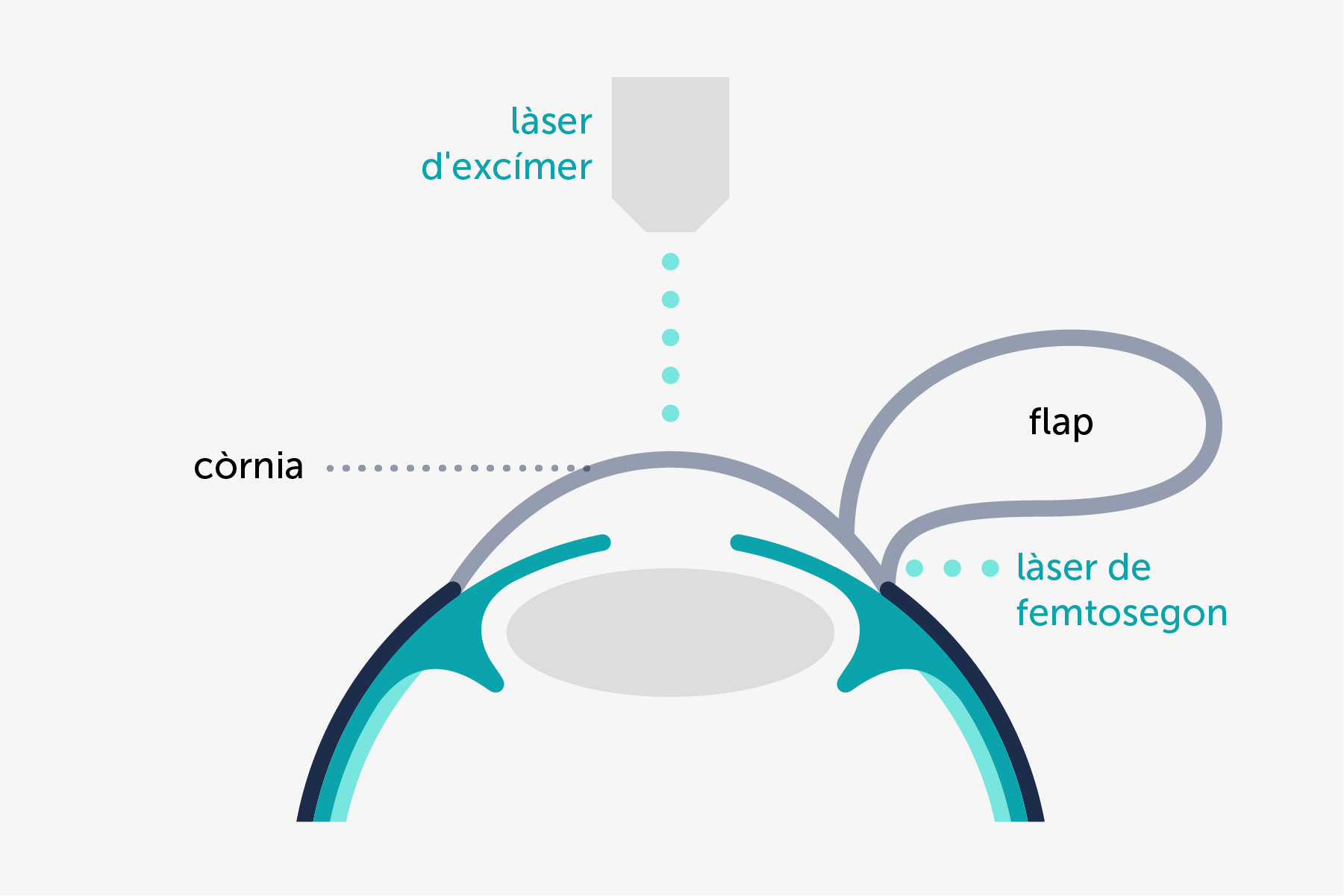 S’aixeca una fina làmina del teixit corneal superficial amb el làser de femtosegon, una eina d’alta tecnologia que permet una precisió superior a qualsevol altre sistema.