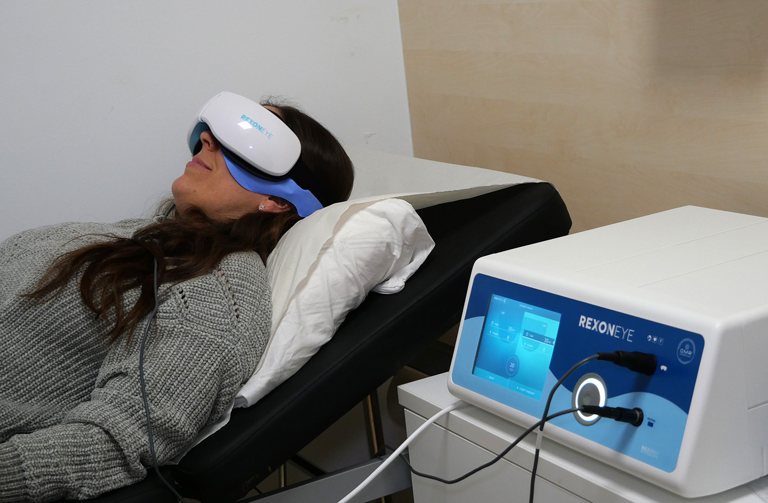 Durant cada sessió, s’aplica, damunt els ulls tancats del/la pacient, una màscara amb elèctrodes de contacte integrats. Per aquests elèctrodes circulen corrents que donen una sensació d’escalfor agradable a la zona de les parpelles. És molt poc probable, però si el/la pacient notés alguna incomoditat o dolor, podria prémer un botó per aturar el tractament a l’instant i revisar-ho amb el/la professional.