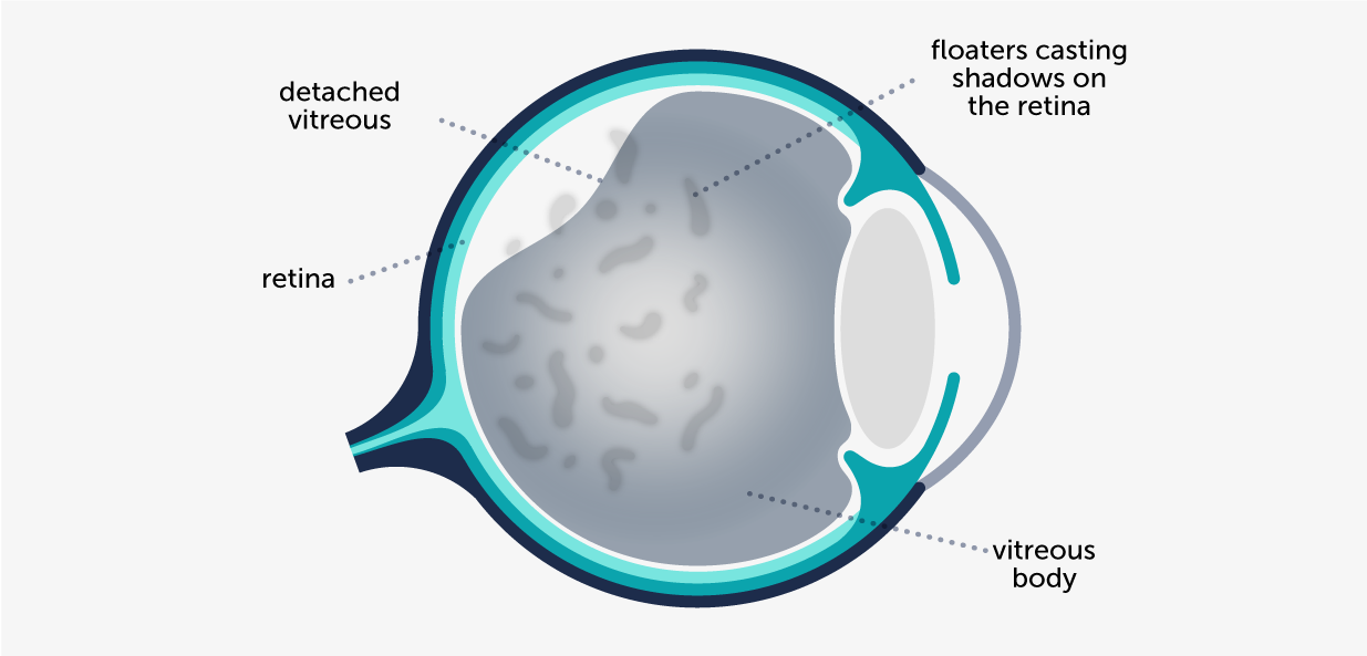 Floaters should not be an issue of concern, but vitreous detachment should be urgently examined. Advanced age, myopia, cataract surgery and eye traumas are the main risk factors for a vitreous detachment.