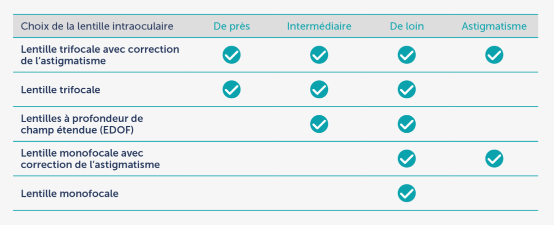 Nos ophtalmologues spécialisés dans la cataracte conseilleront chaque patient sur la meilleure option en fonction de ses besoins, de son mode de vie et de ses antécédents ophtalmologiques.