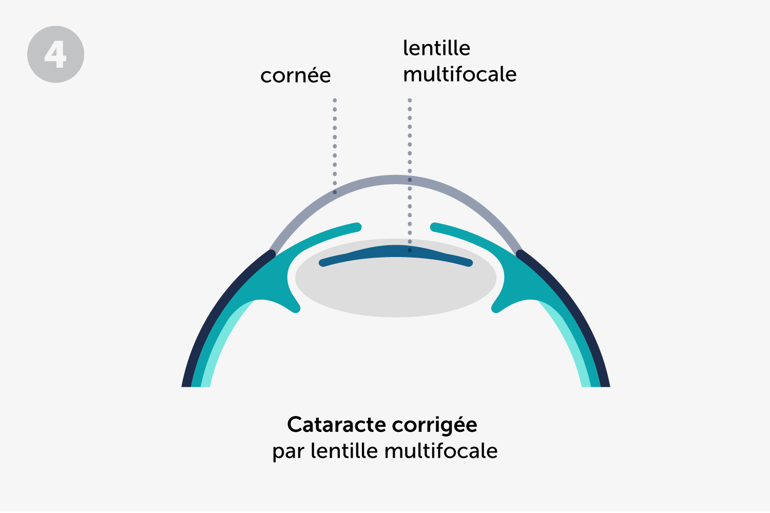 La lentille intraoculaire utilisée pour remplacer le cristallin opacifié permet de corriger les problèmes de réfraction du patient tels que la myopie, l’hypermétropie, l’astigmatisme ou la presbytie. De cette façon, et selon le type de lentille intraoculaire choisi, le patient peut réduire ou même éliminer sa dépendance aux lunettes.