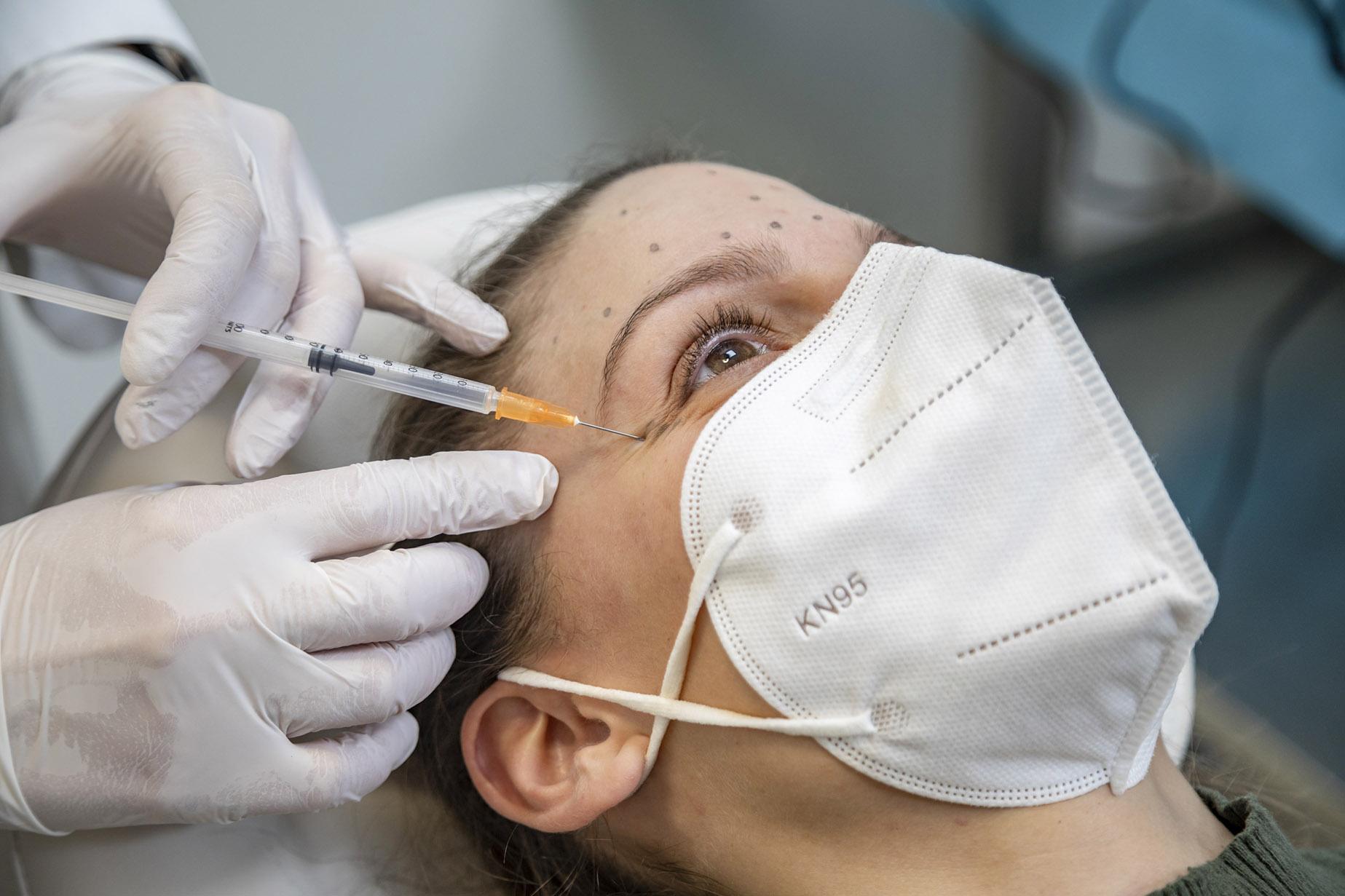 Après le traitement, il est indispensable de suivre les instructions du médecin. Pendant les 4 heures suivant l’application, le patient ne doit pas s’appuyer sur la zone traitée ni la frotter (ni porter quoi que ce soit qui pourrait exercer une pression sur la zone, comme un casque de moto) afin d’éviter que le médicament injecté ne s’étende à des zones non désirées.afin d’éviter que le médicament injecté ne se répande dans des zones non désirées. Il est également déconseillé de faire de l’exercice physique ou de boire de l’alcool pendant les 8 heures qui suivent le traitement.